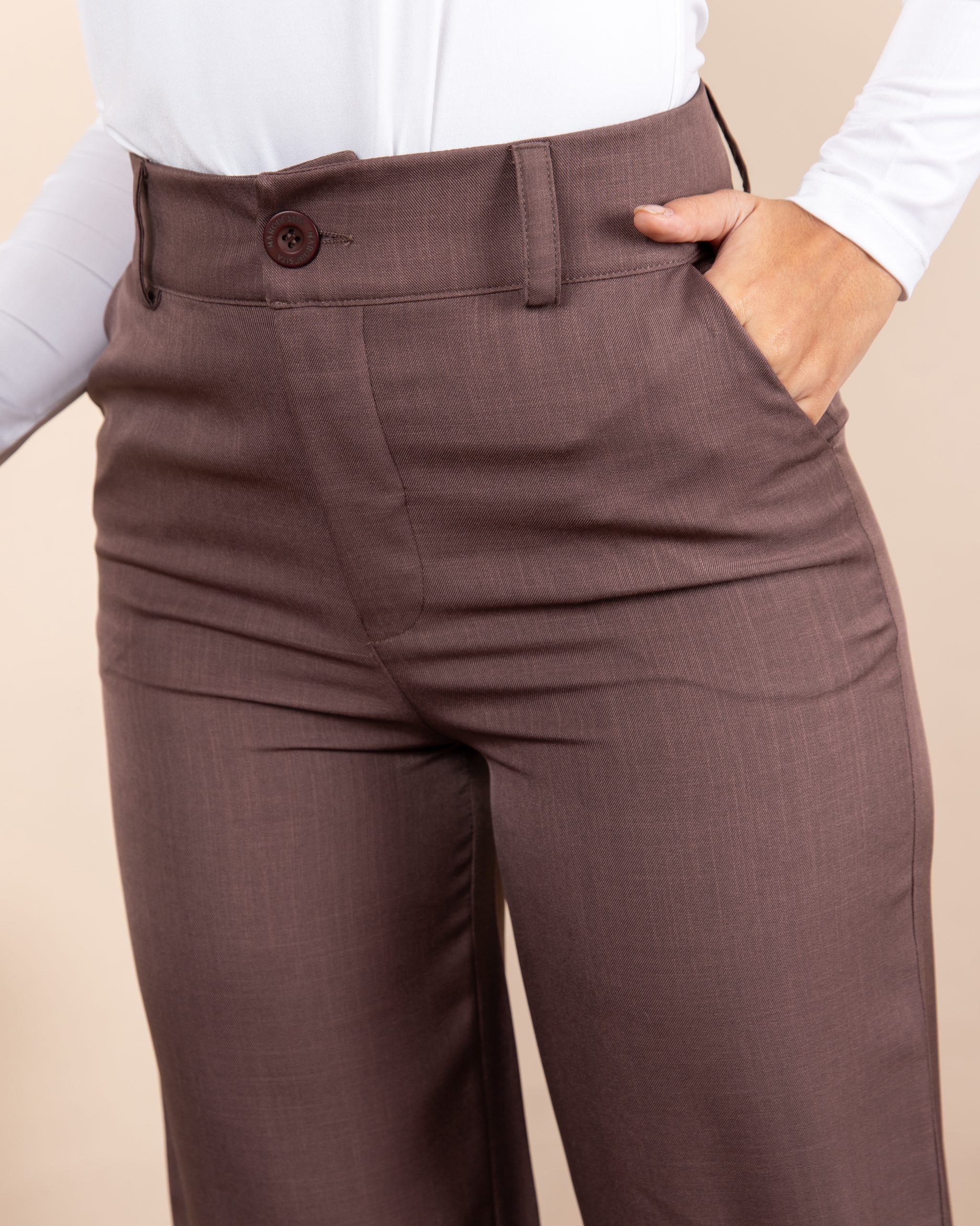 Pantalón en talle alto con bolsillo, confeccionado en tela lino prada lux.